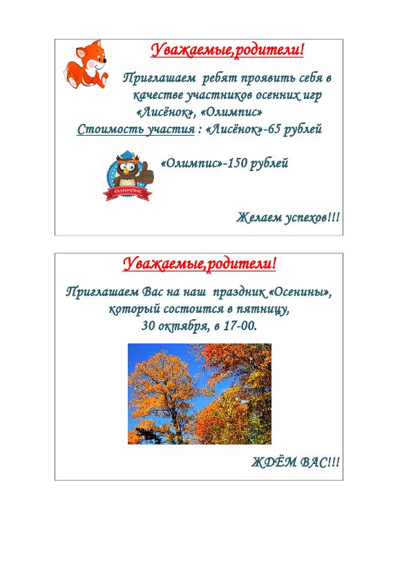 Уважаемые дети и родители!